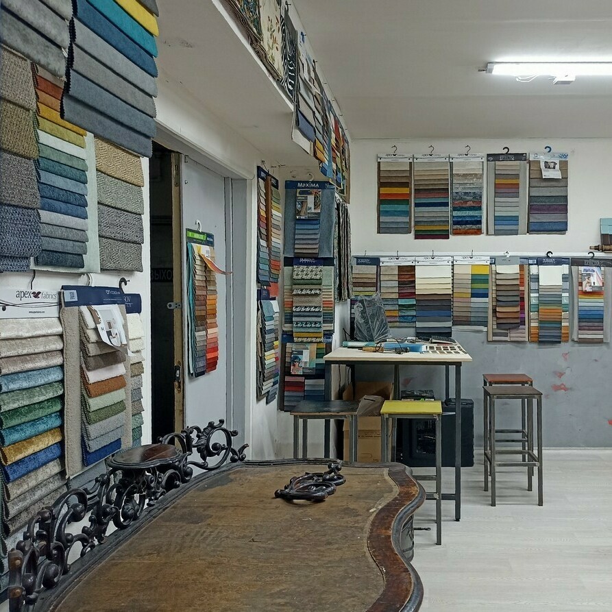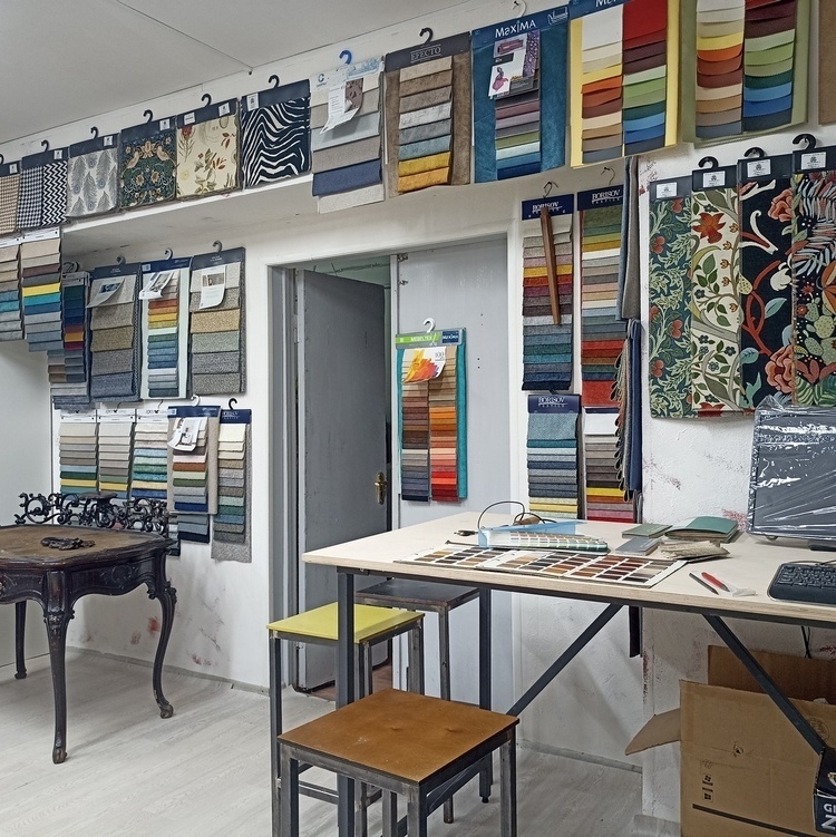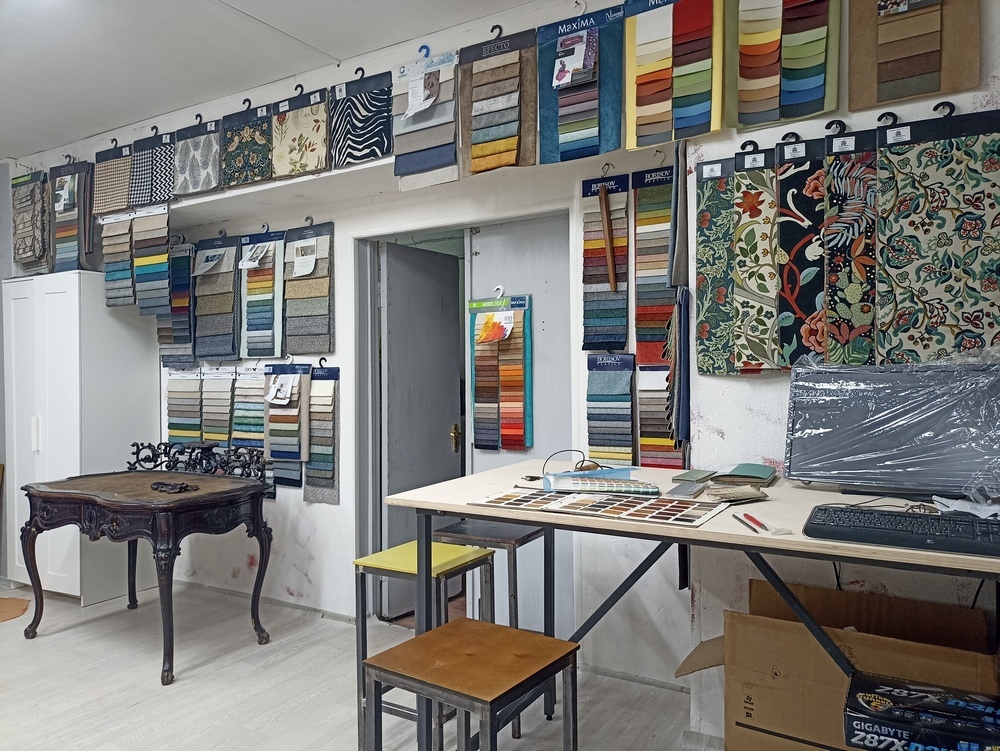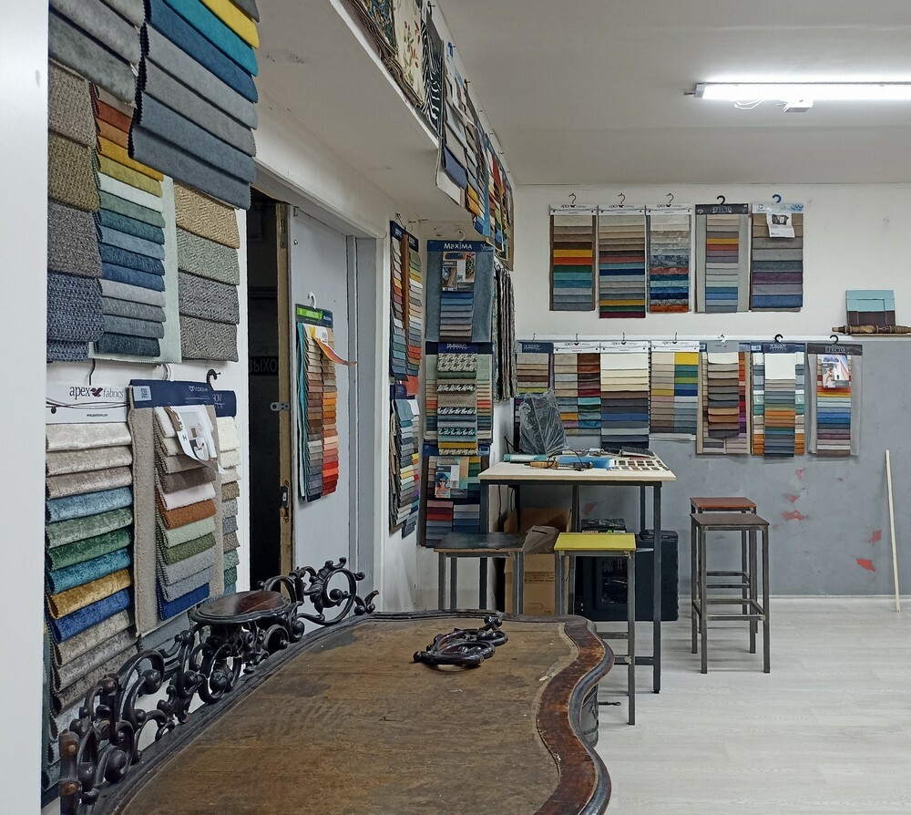 ШОУ-РУМ. Выставочный зал образцов тканей и отреставрированной мебели. Здесь можно выбрать оттенки дерева, увидеть готовые работы. Есть палитра NCS, по которой можно подобрать любой оттенок эмали.