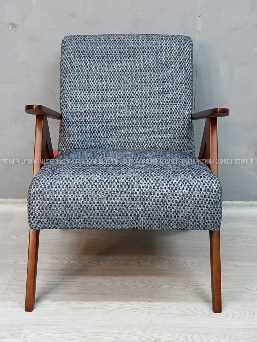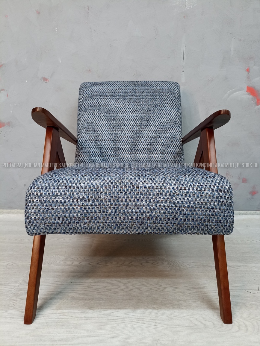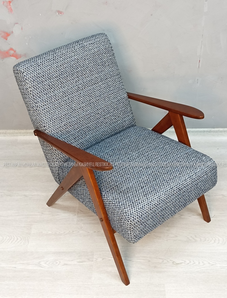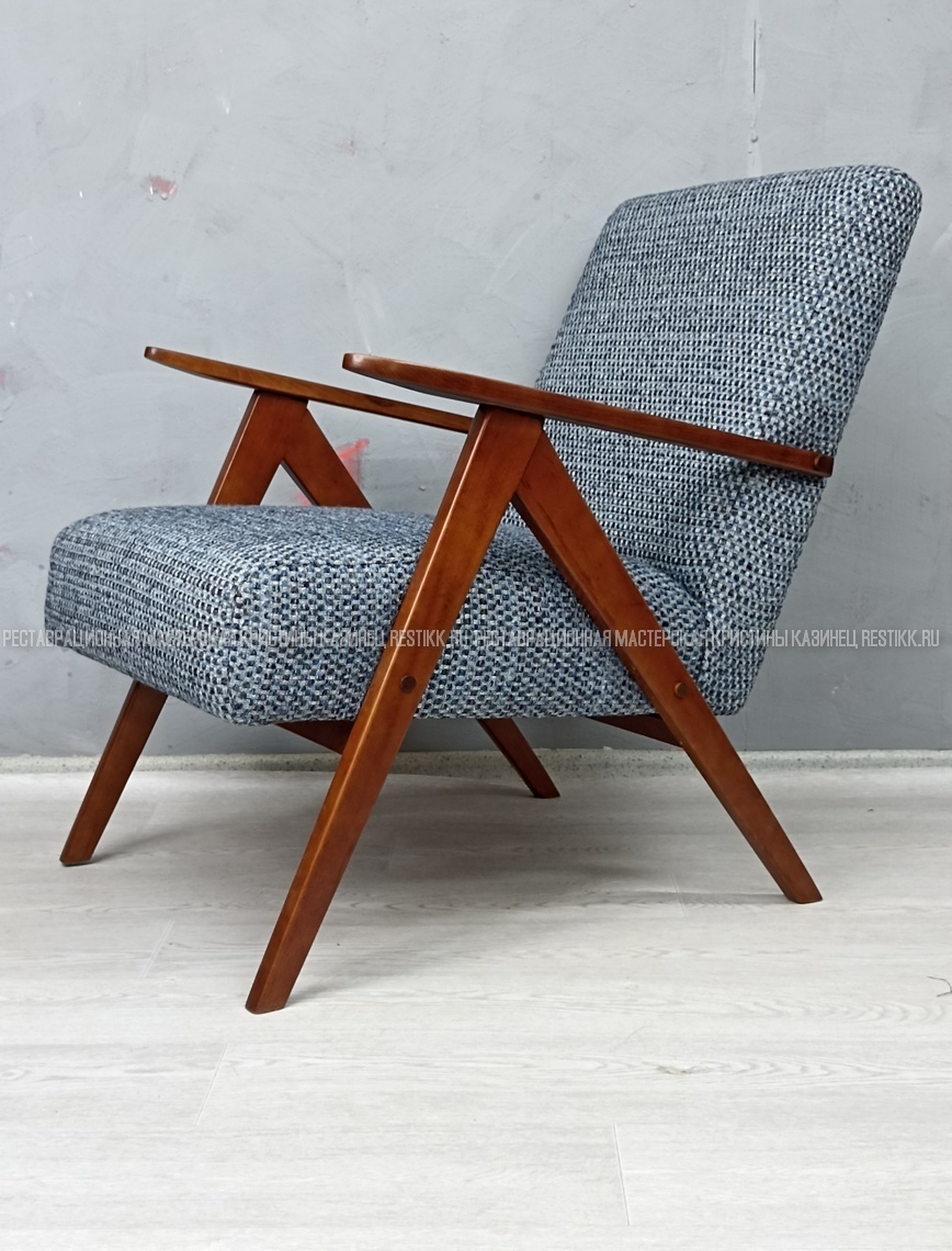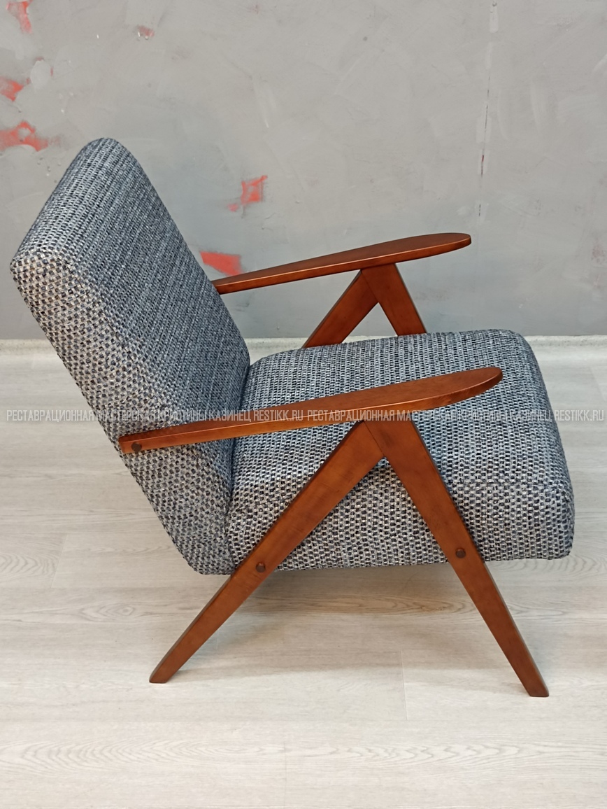 Кресло HALABALA после реставрации. Натуральная овечья шкура.
