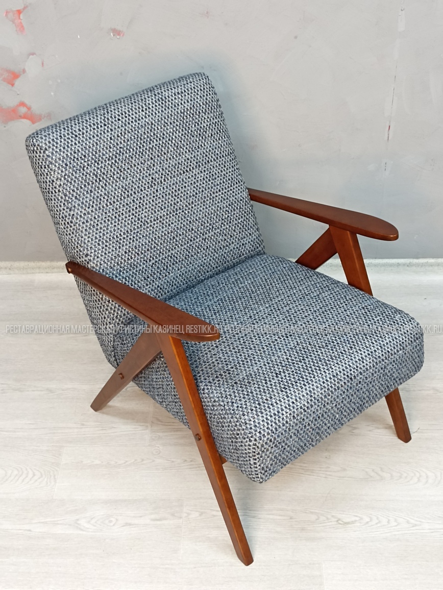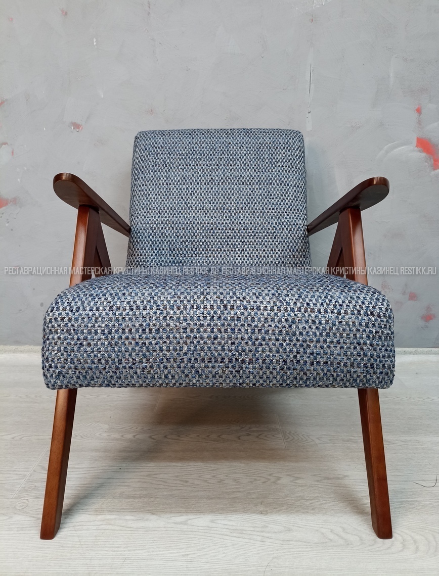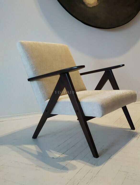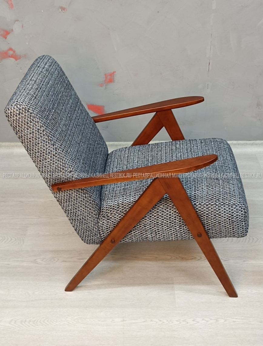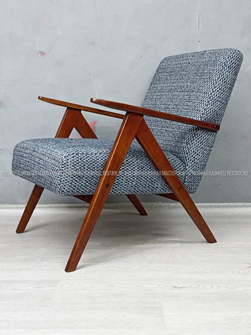 Кресло HALABALA после реставрации. Натуральная овечья шкура.