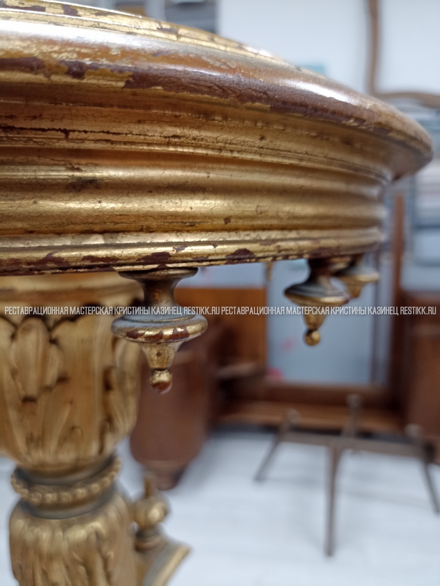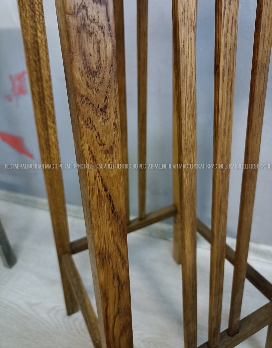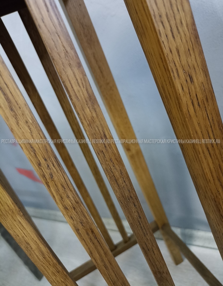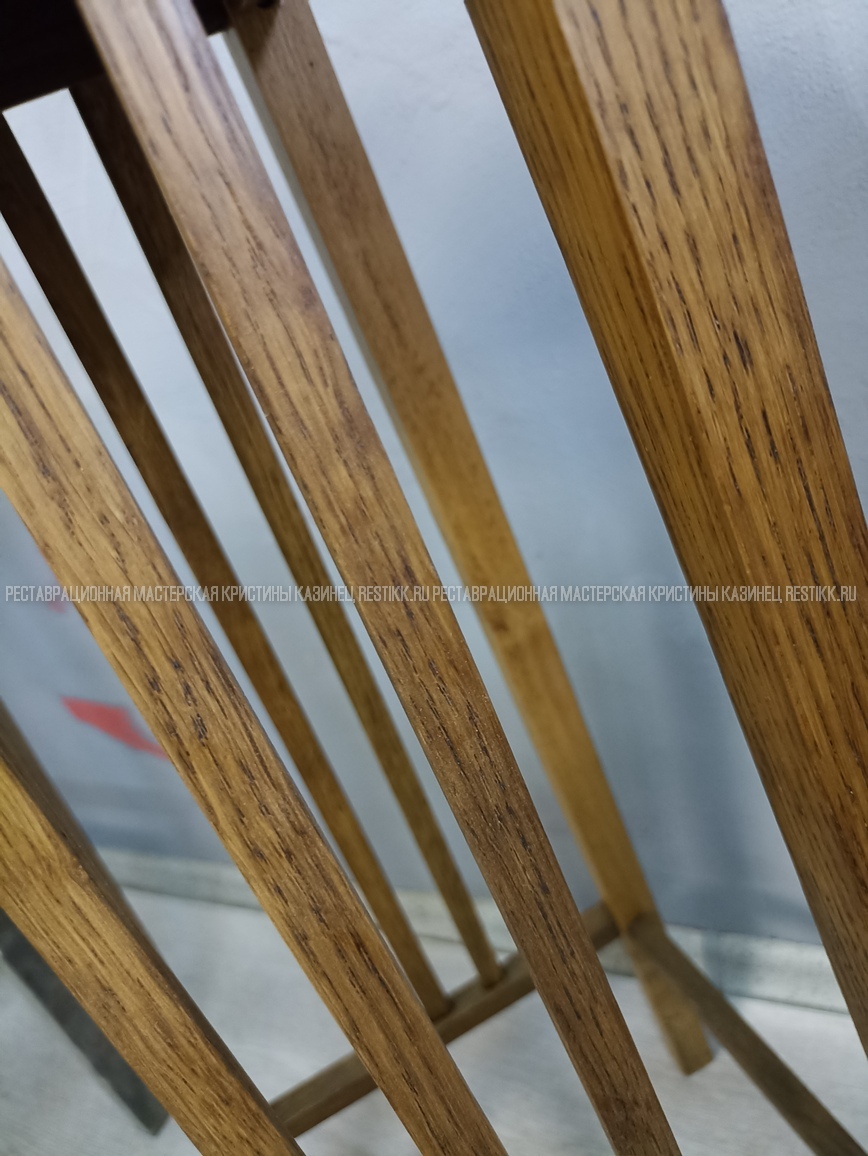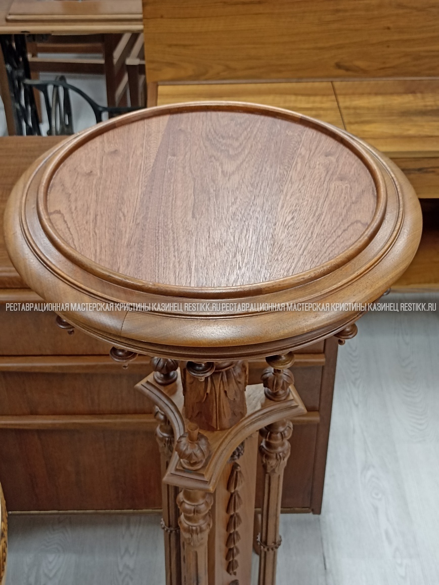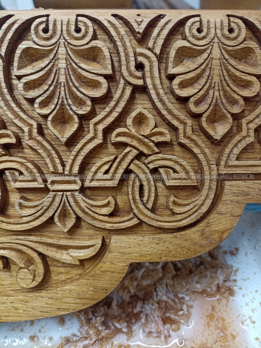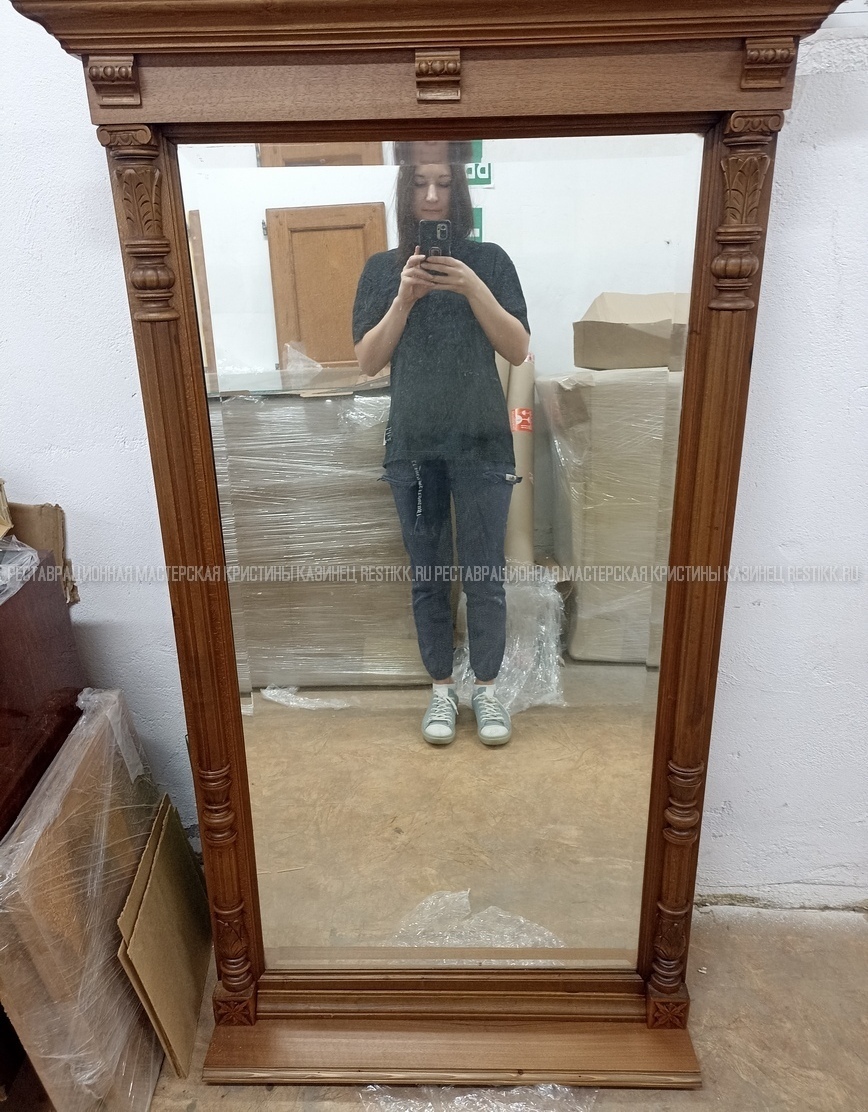 Старый шпон повсеместно отслаивался, сохранить его было невозможно. Поэтому работа предполагала полную перефанеровку всех плоскостей.