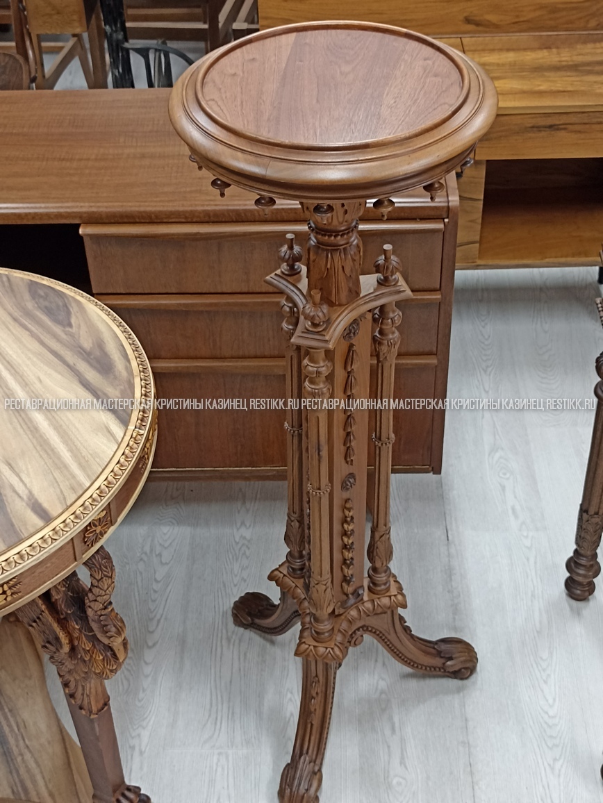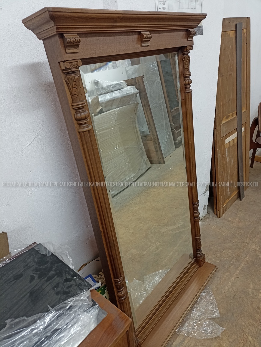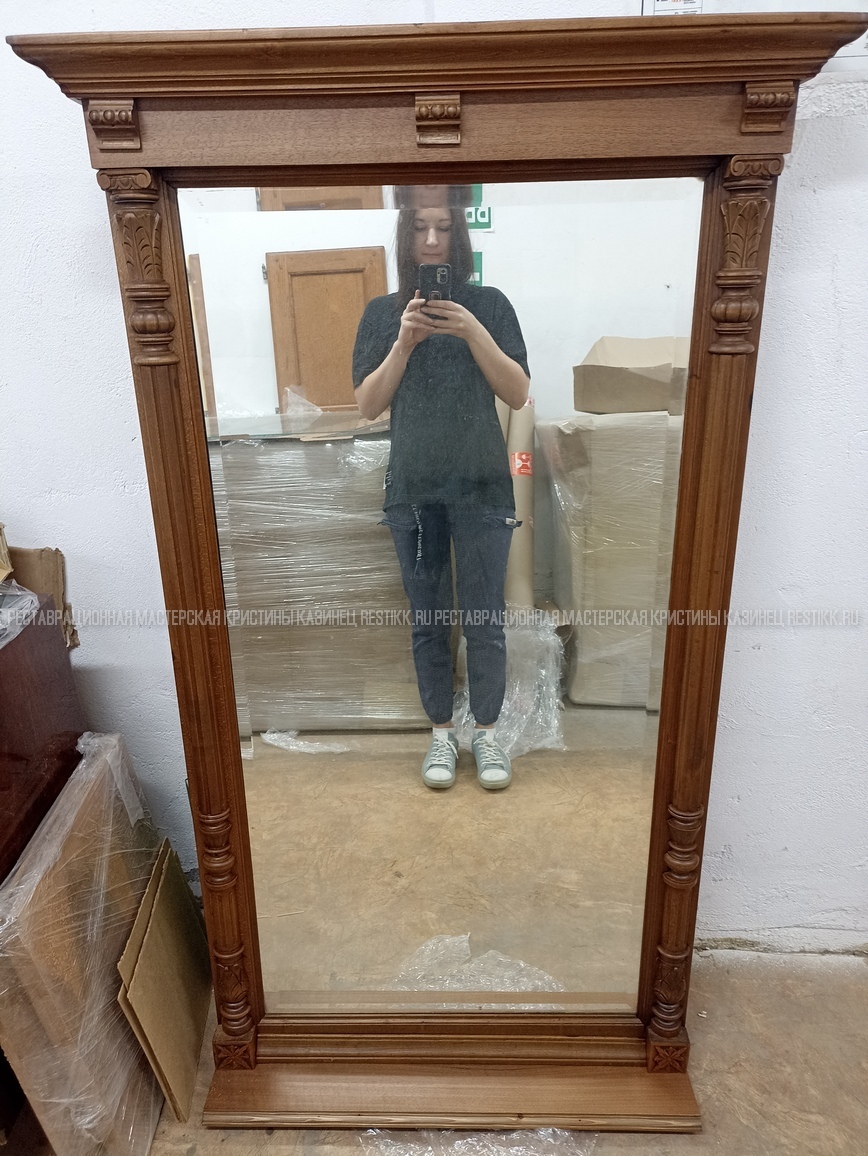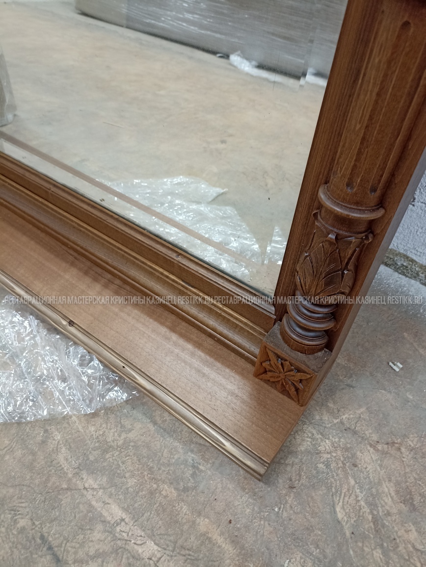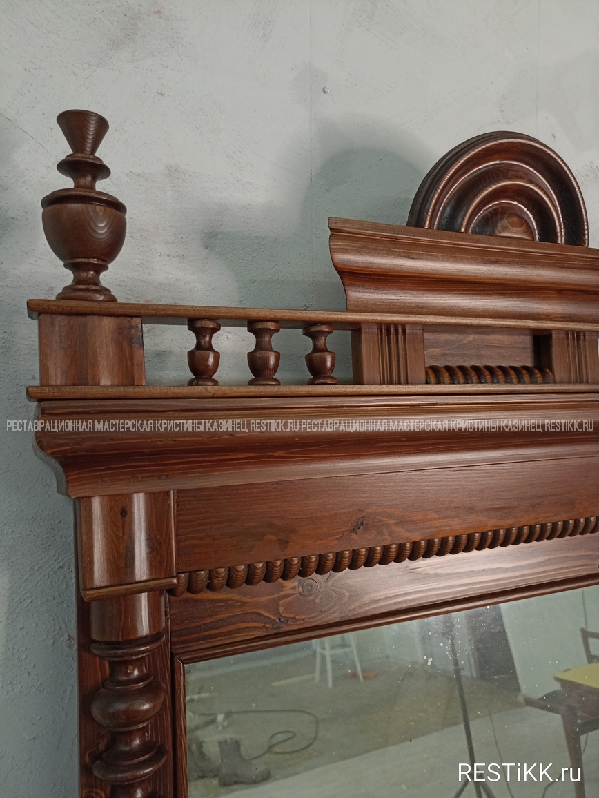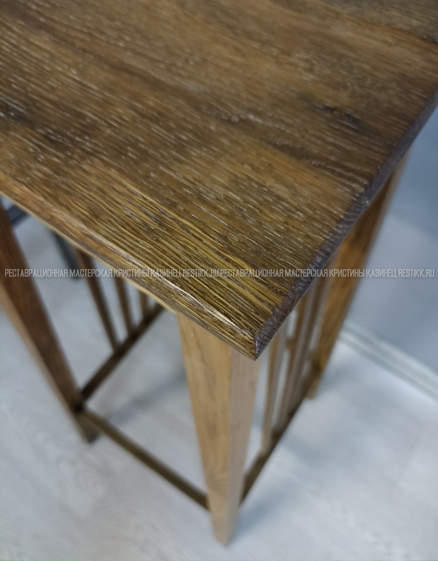 Старый шпон повсеместно отслаивался, сохранить его было невозможно. Поэтому работа предполагала полную перефанеровку всех плоскостей.