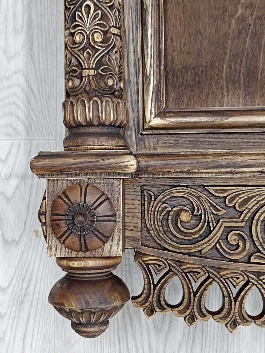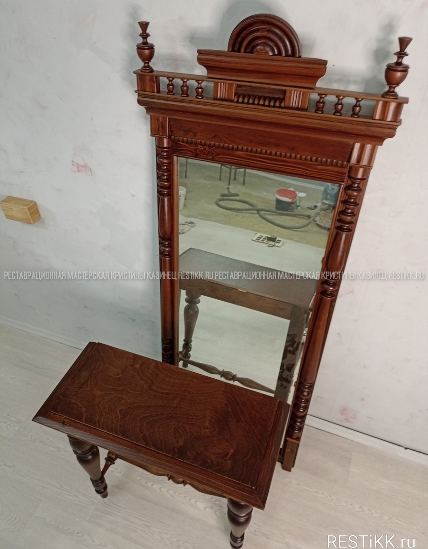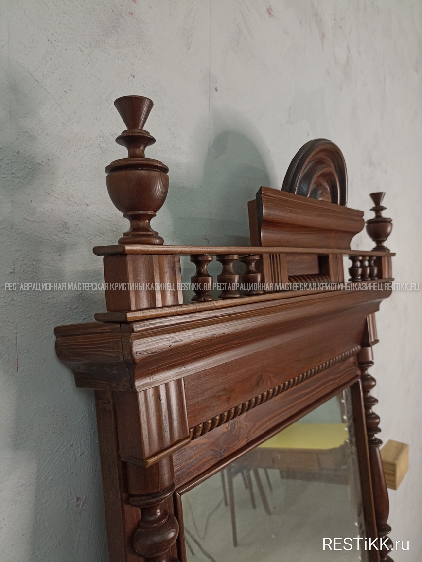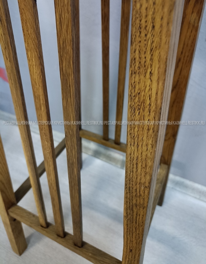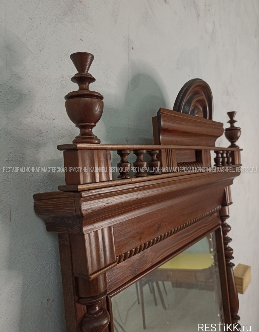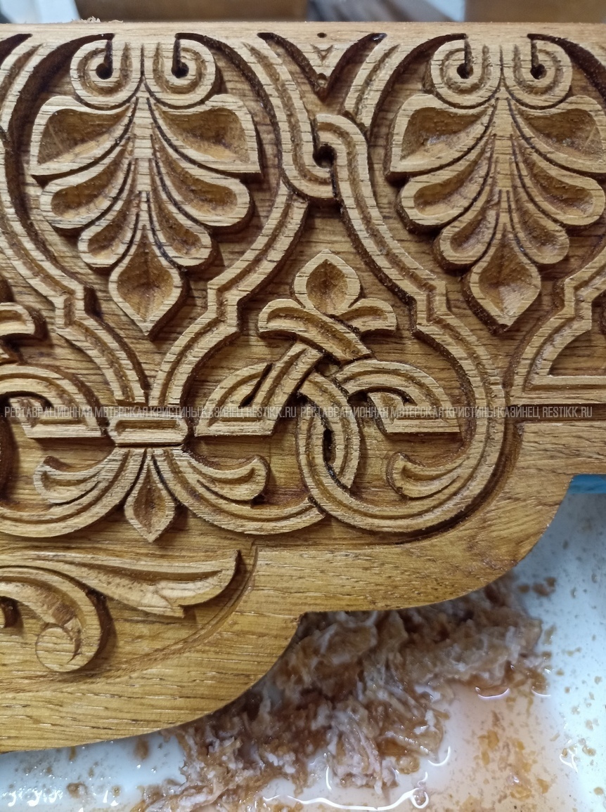 Старый шпон повсеместно отслаивался, сохранить его было невозможно. Поэтому работа предполагала полную перефанеровку всех плоскостей.