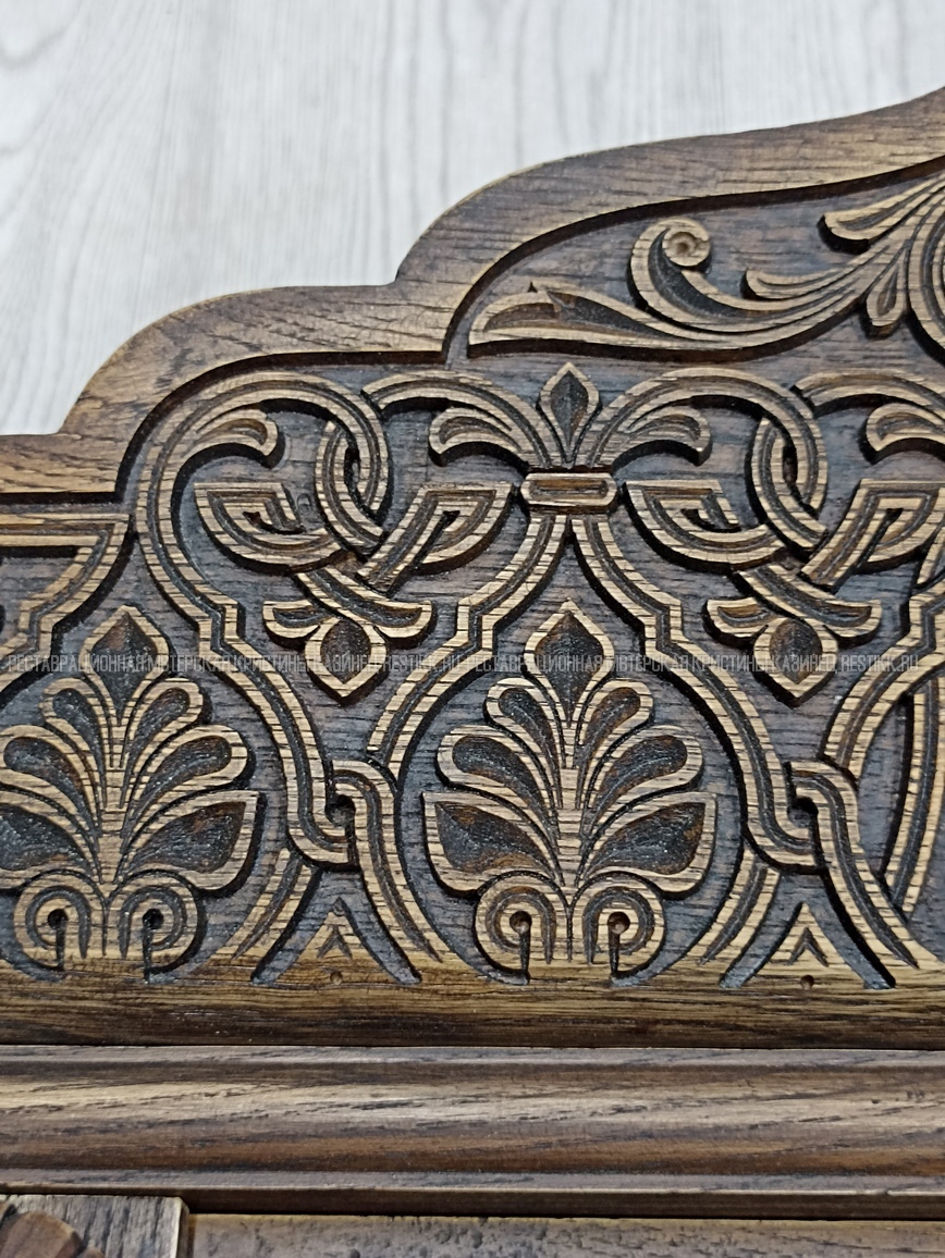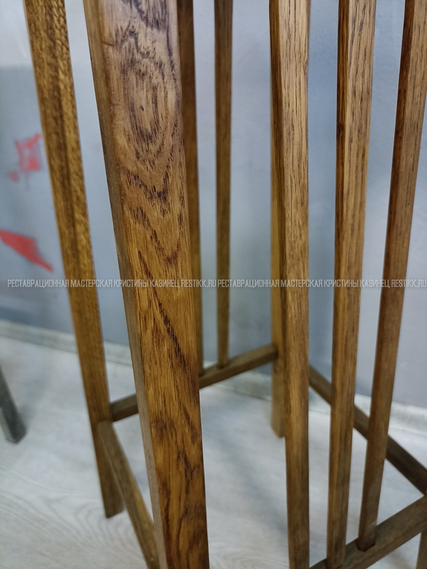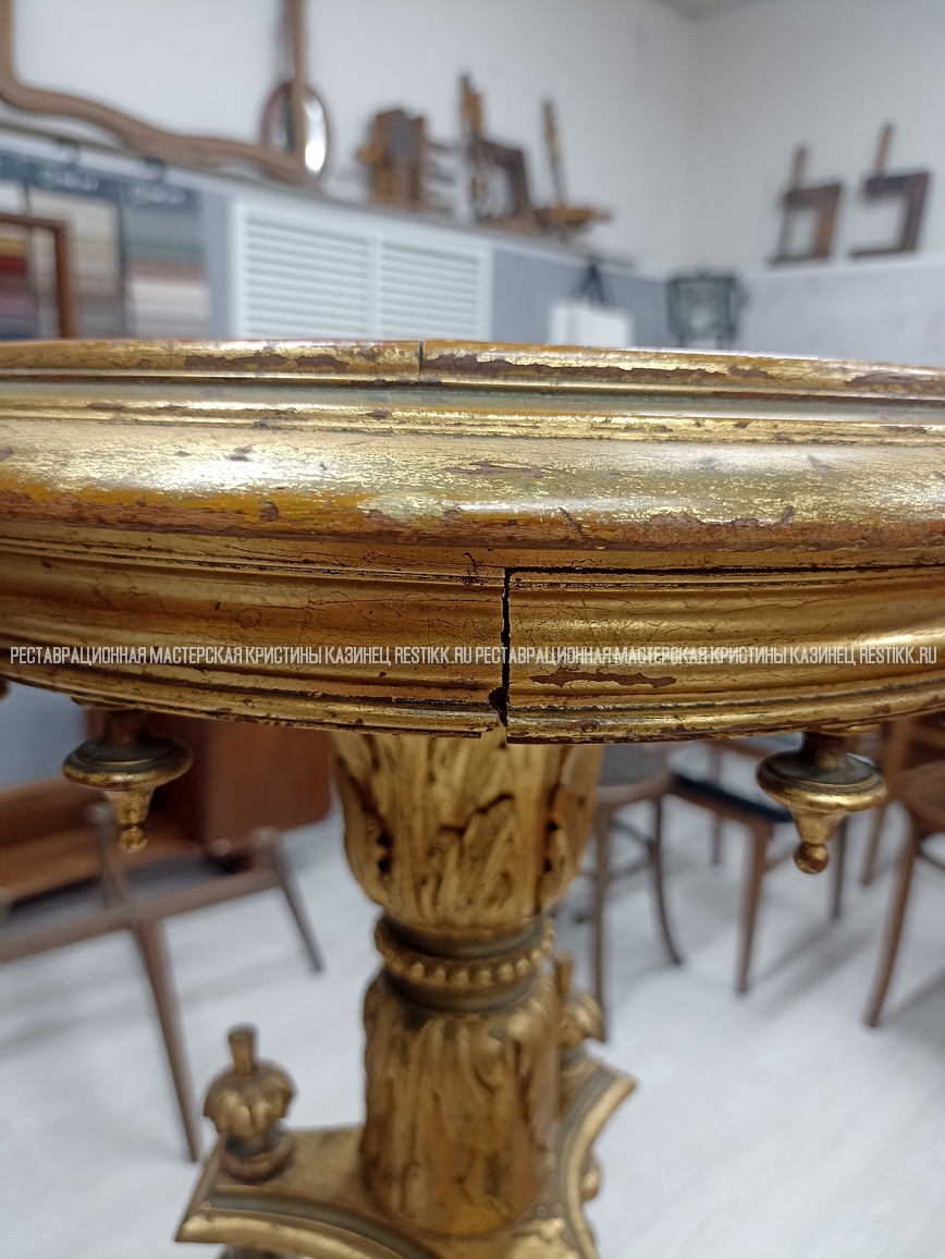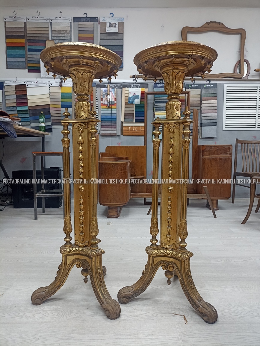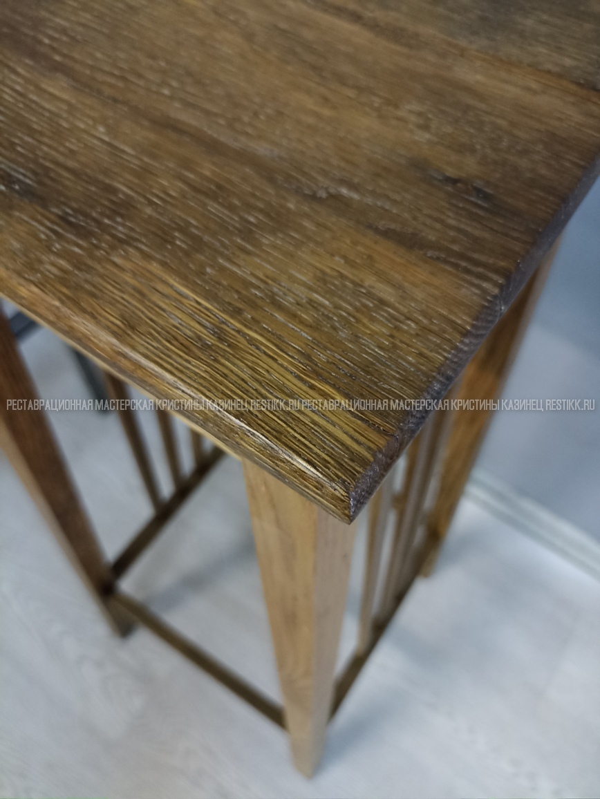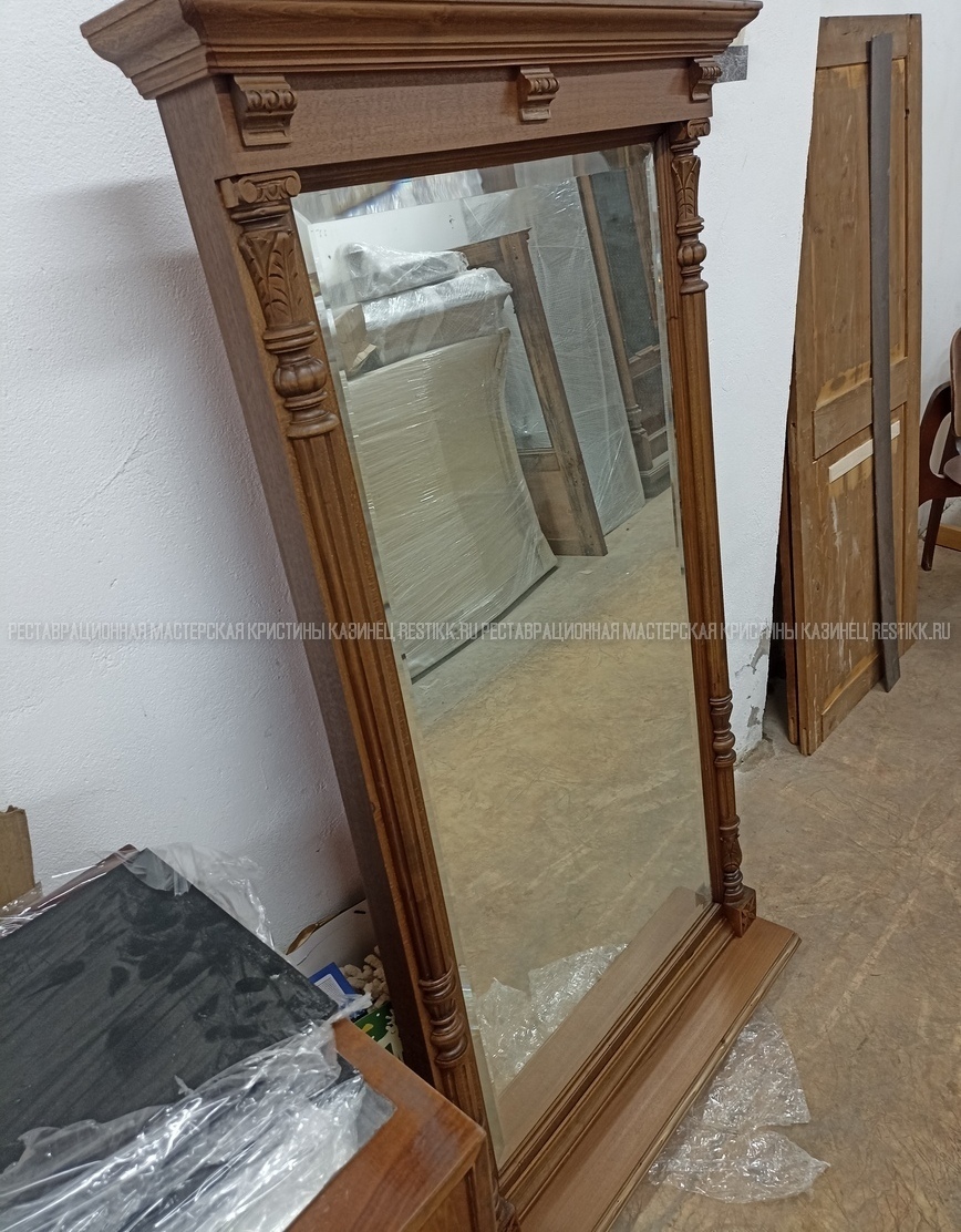 Старый шпон повсеместно отслаивался, сохранить его было невозможно. Поэтому работа предполагала полную перефанеровку всех плоскостей.