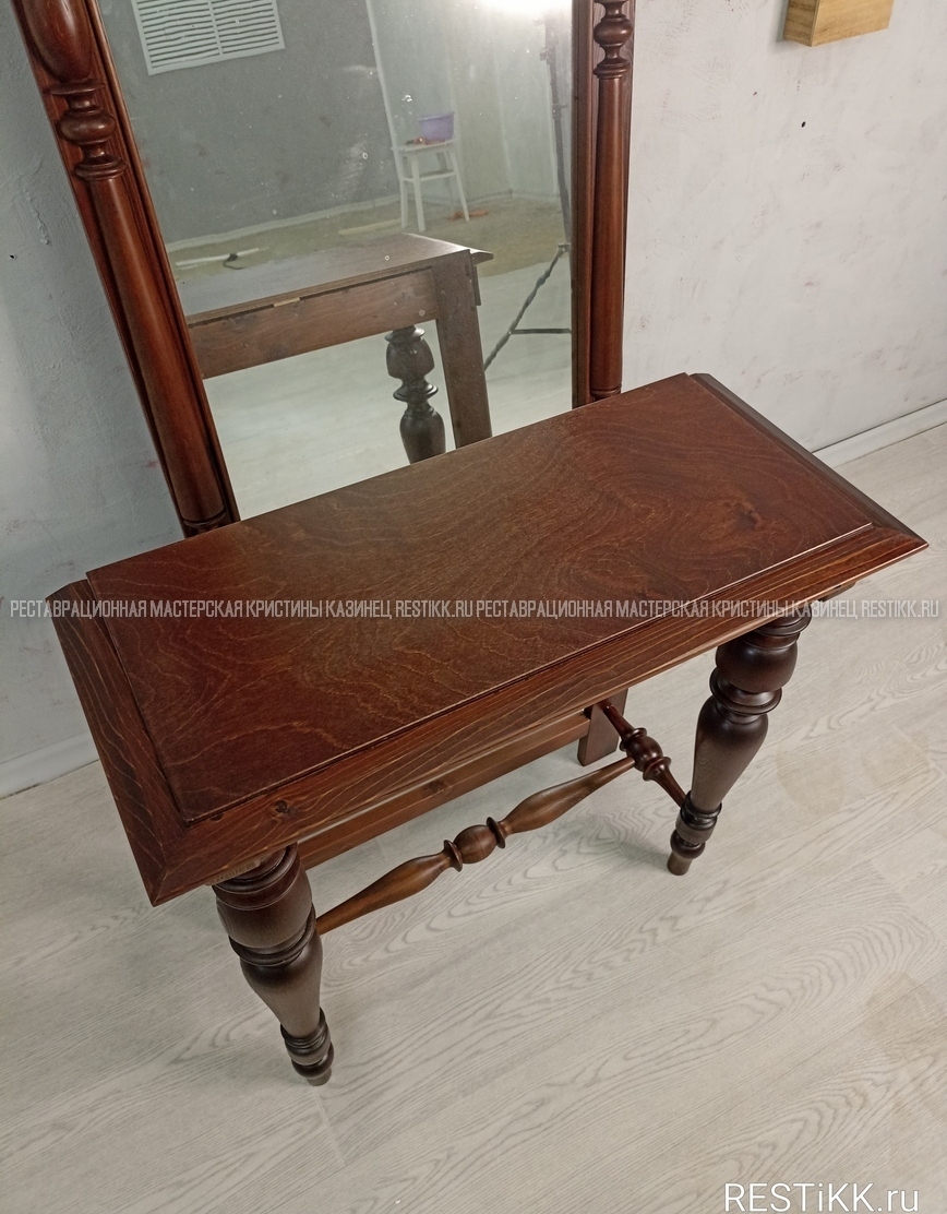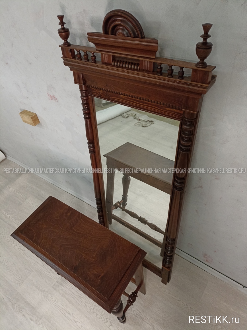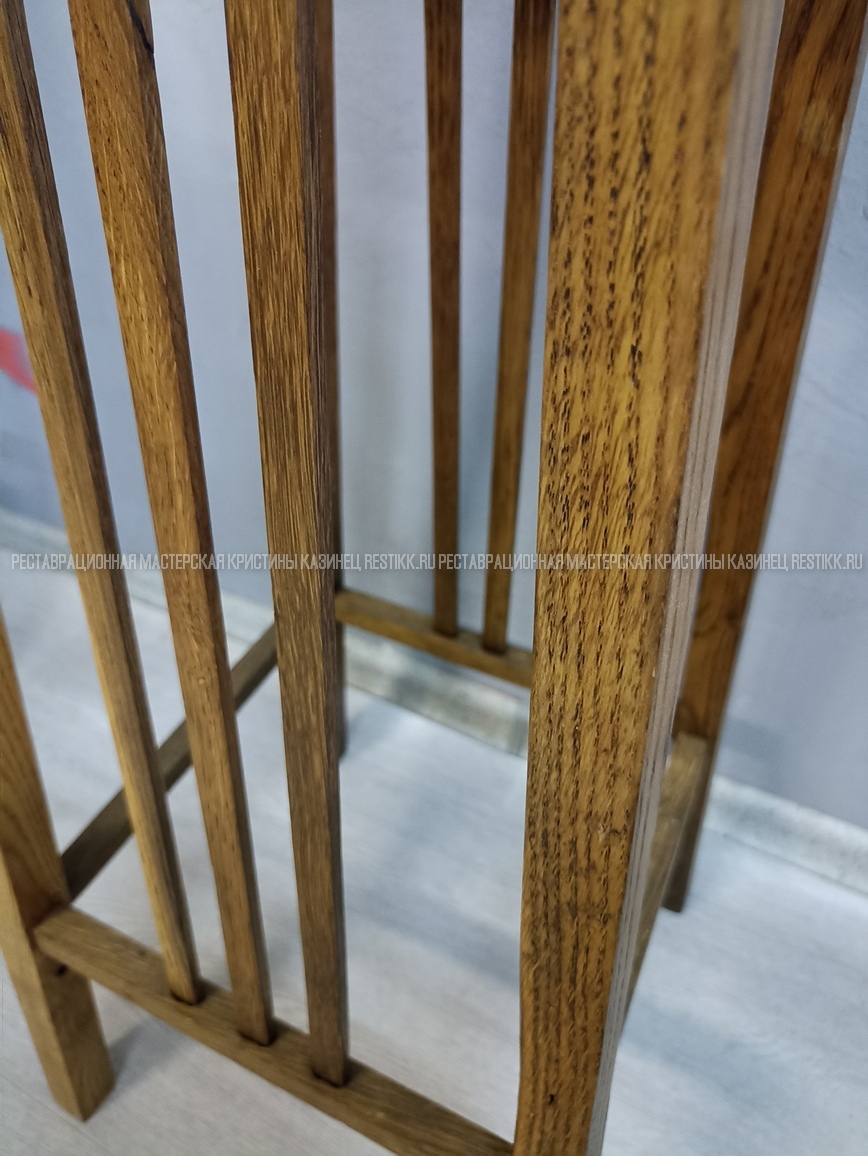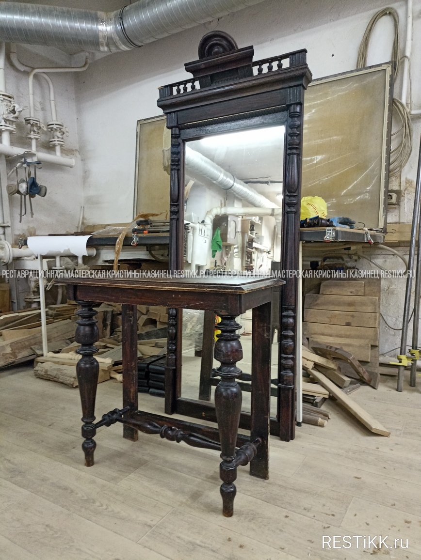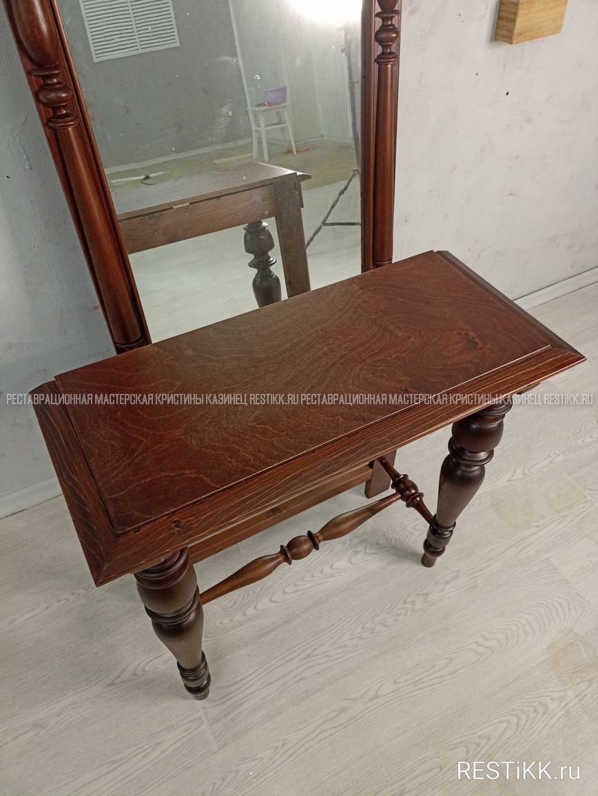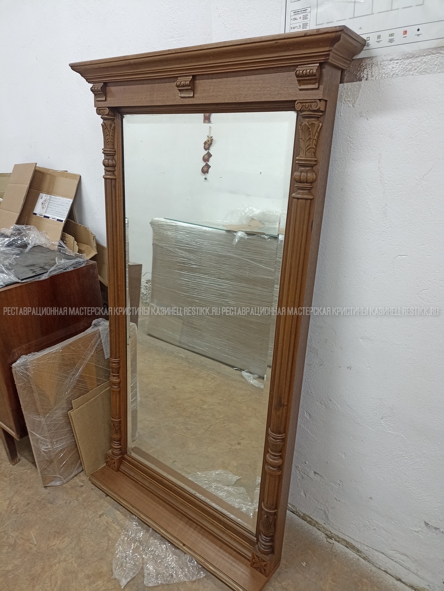 Старый шпон повсеместно отслаивался, сохранить его было невозможно. Поэтому работа предполагала полную перефанеровку всех плоскостей.