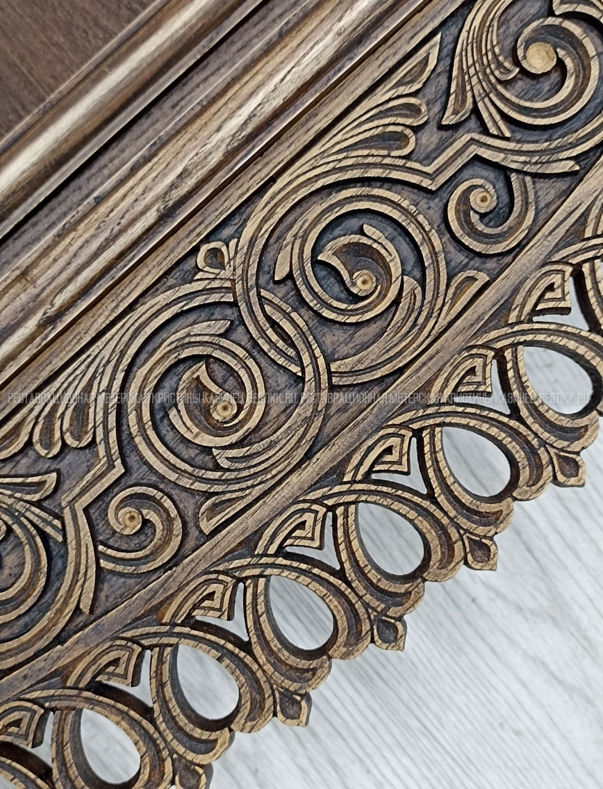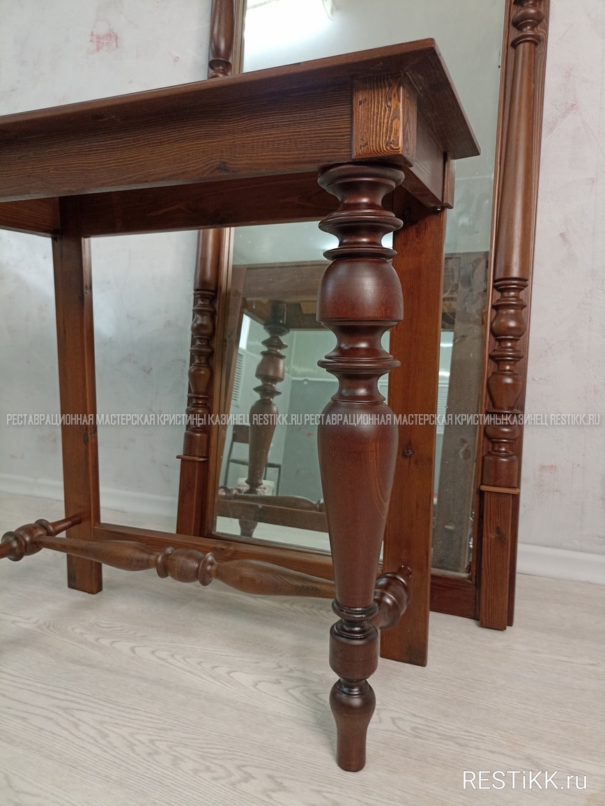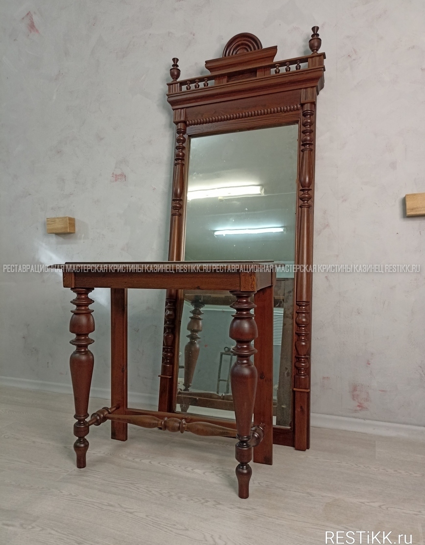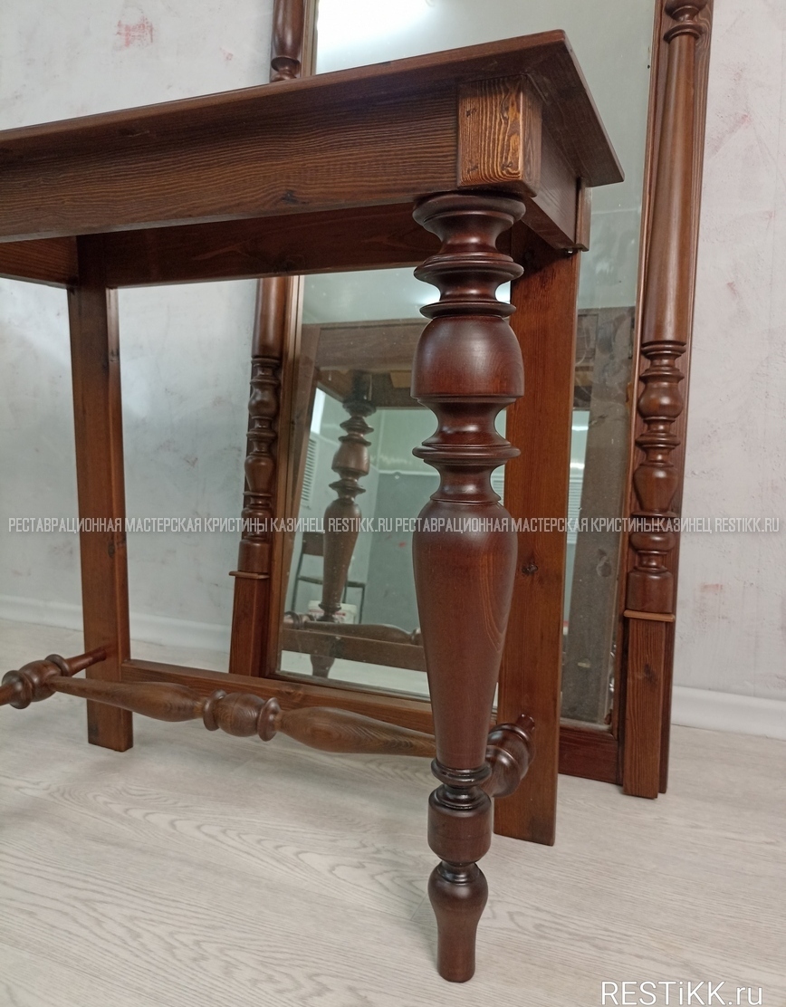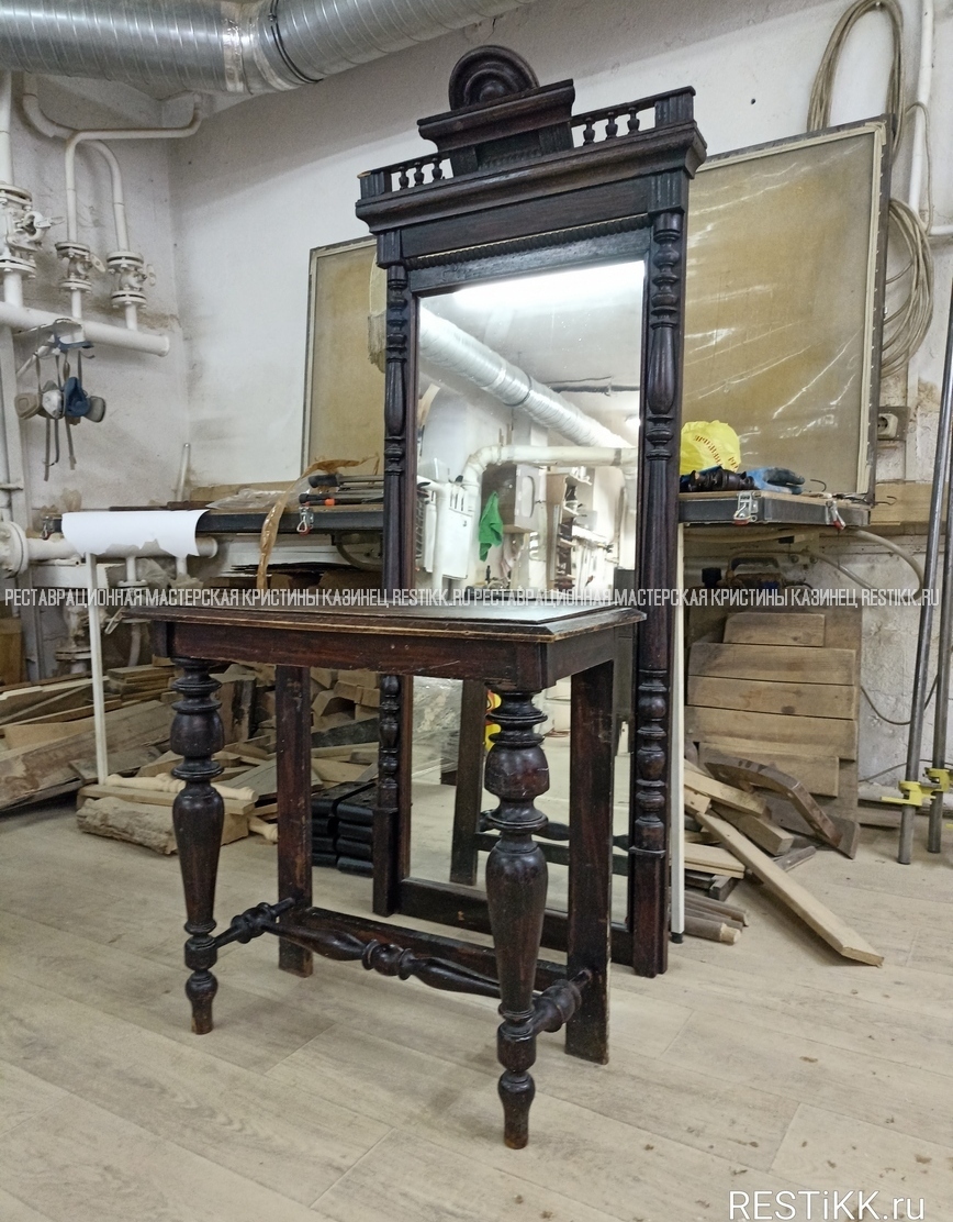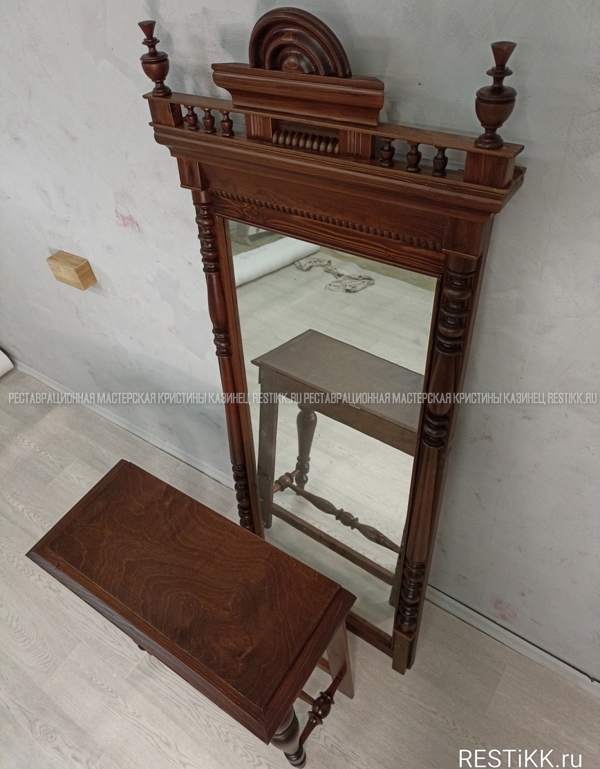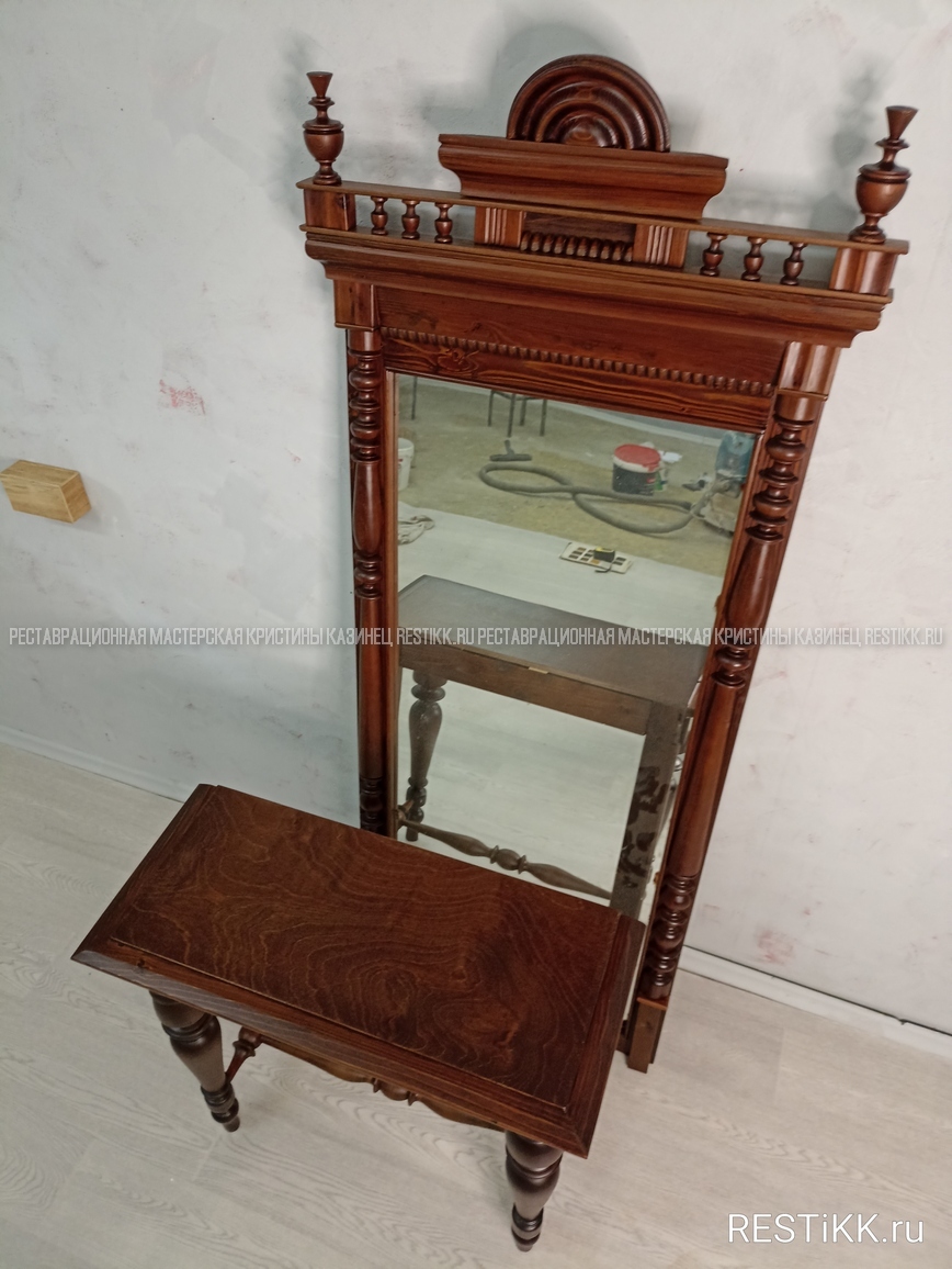 Старый шпон повсеместно отслаивался, сохранить его было невозможно. Поэтому работа предполагала полную перефанеровку всех плоскостей.