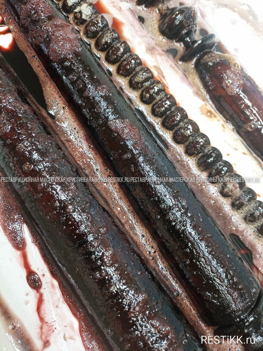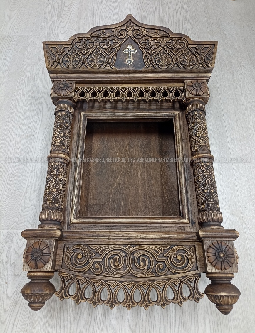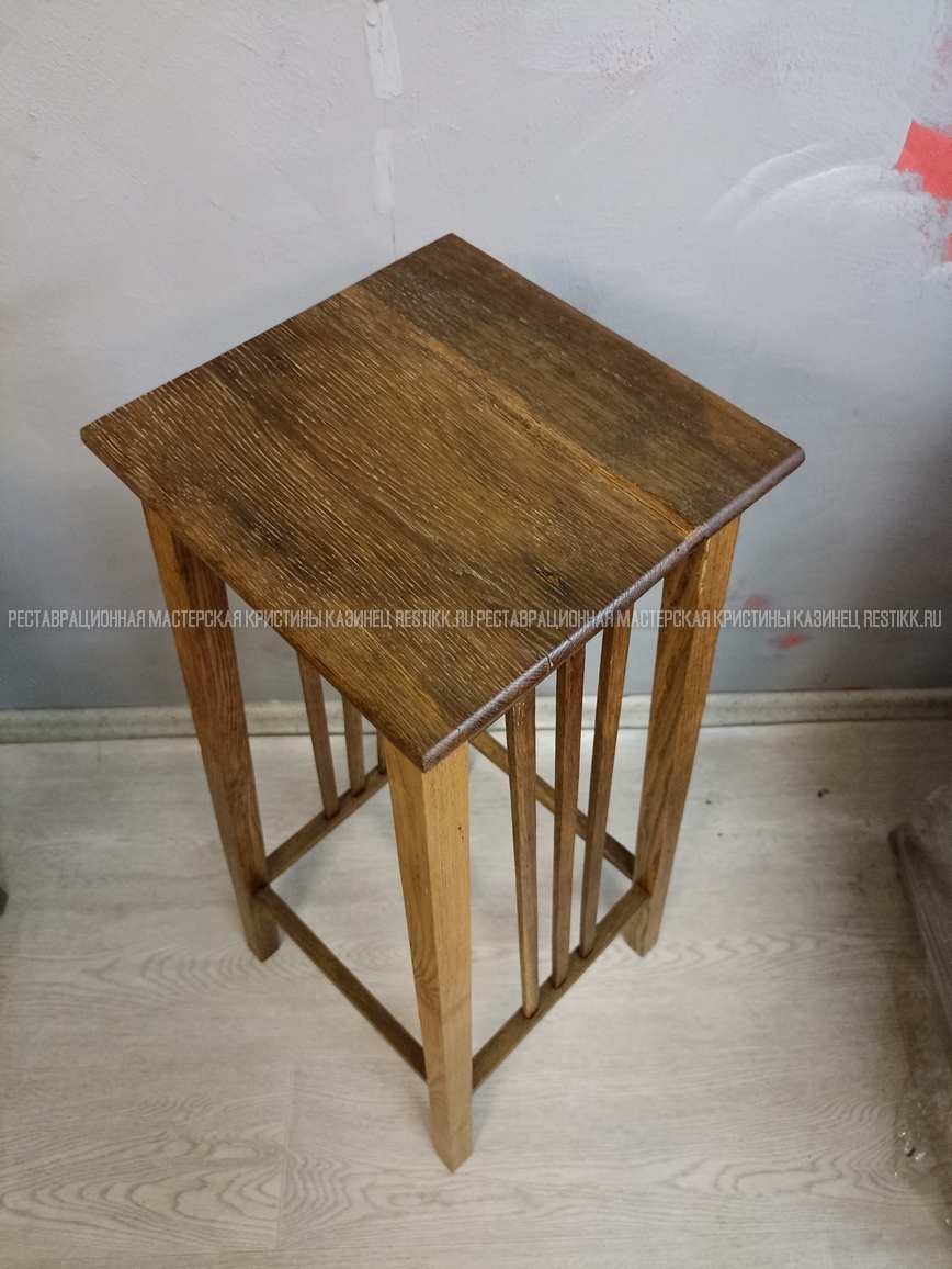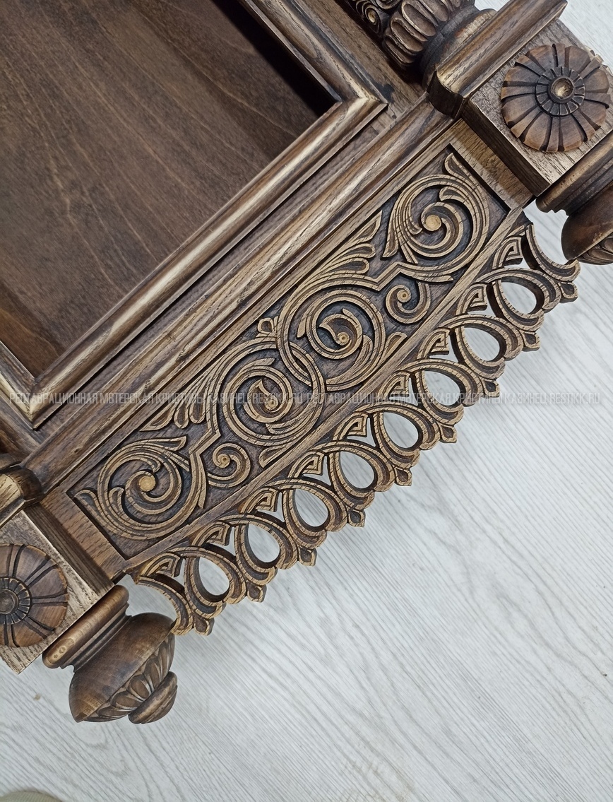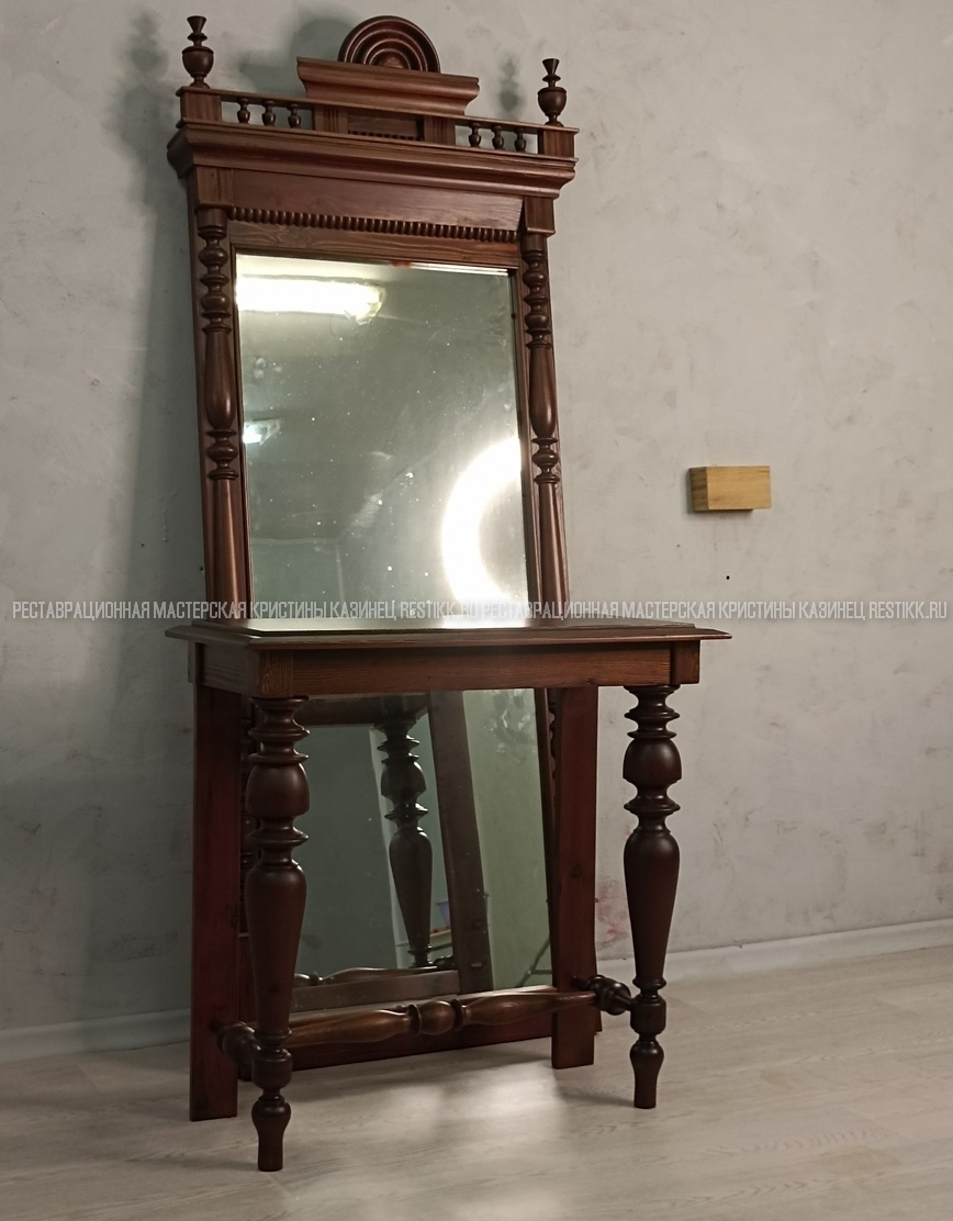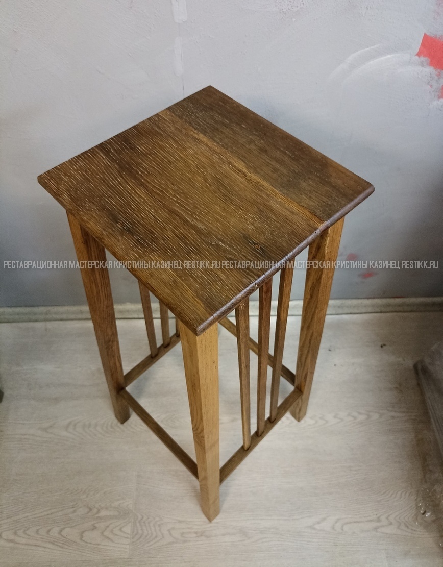 Старый шпон повсеместно отслаивался, сохранить его было невозможно. Поэтому работа предполагала полную перефанеровку всех плоскостей.