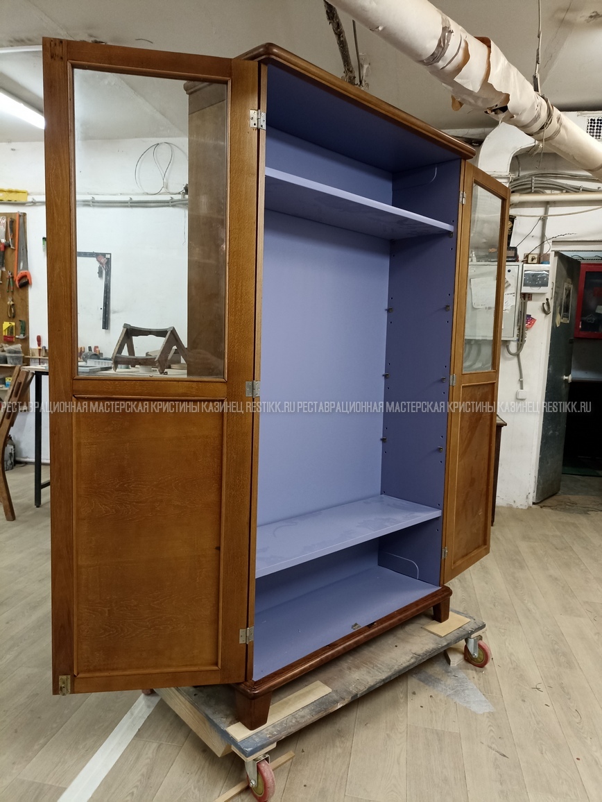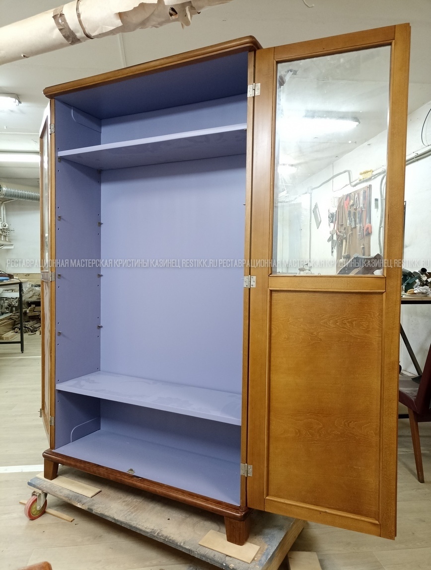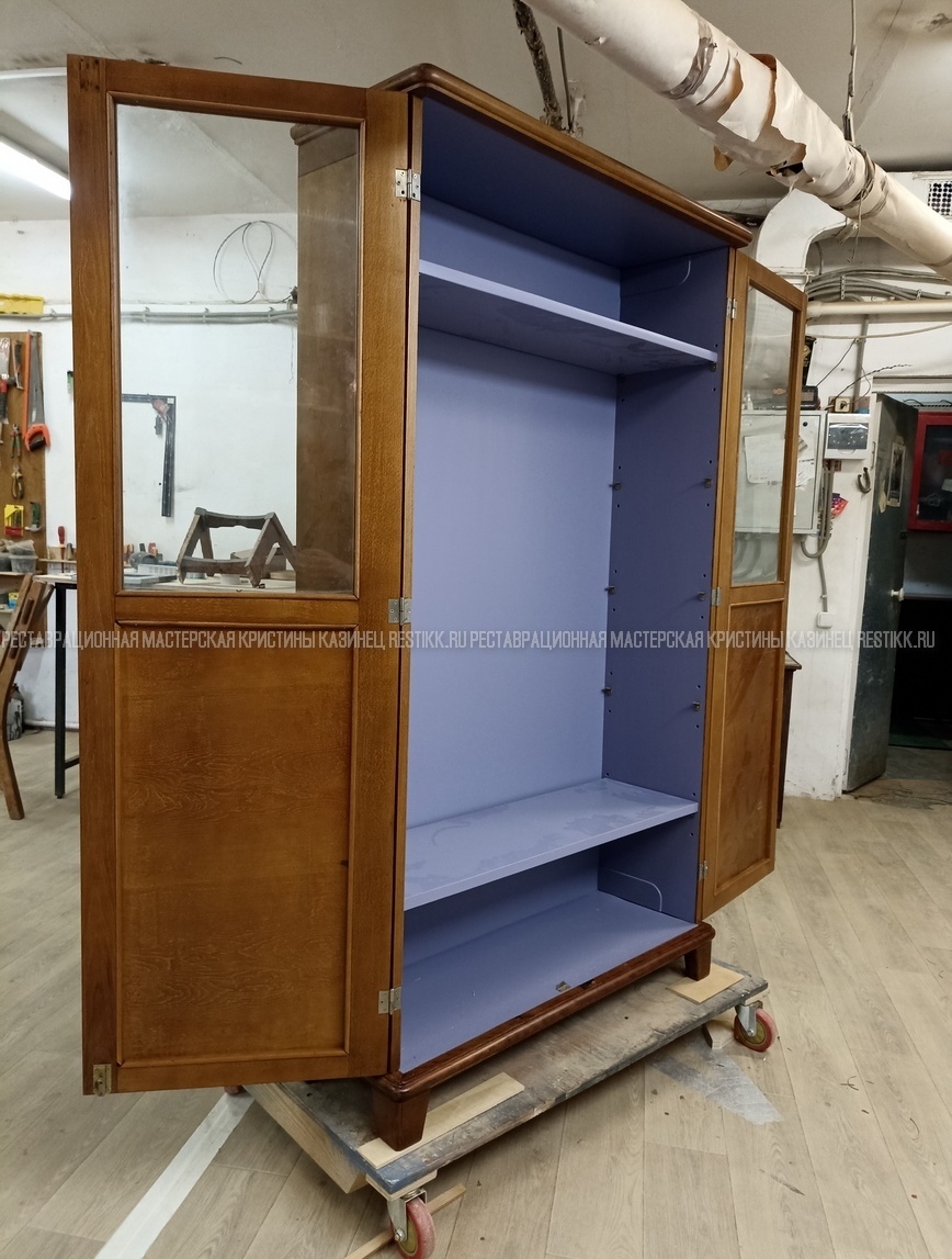 Реставрация советского шкафа. Лавандовая эмаль + натуральный оттенок